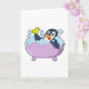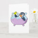Tarjeta Pingüino en bañera con pato