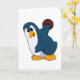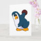 Tarjeta Pingüino en bolera con bola de bolos
