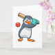 Tarjeta Pingüino en Cricket con bate de cricket