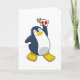 Tarjeta Pingüino en la mesa de póquer con cartas de póquer