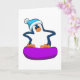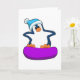 Tarjeta Pingüino en snowboarding con snowboard