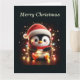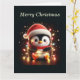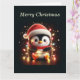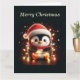 Tarjeta Pingüino lindo envuelto en luces Navidades