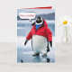 Tarjeta Pingüino navidad Con Abrigo Rojo