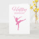 Tarjeta clásica de cumpleaños con una silueta de bailarina rosa con el texto "Feliz cumpleaños" - ideal para los elegantes chicas adolescentes a los que les encanta bailar , ballet . Puede editar los colores de todos los elementos de diseño / fondo dentro /afuera .