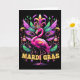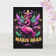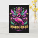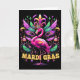 Tarjeta Pink Flamingo Mardi Gras Crown And Beads Mask Carn
