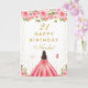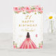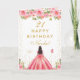 Tarjeta Pink Floral Dark Skin Girl Birthday