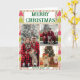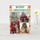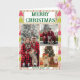 Rustic pink & green Christmas trees on holiday card. Perfect for the season of giving.