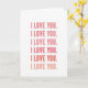 This greeting card keeps things simple and sweet, with the words “I LOVE YOU.” repeated six times in a straight vertical line. Each line sits on a plain white background with lots of open space around it, so your eyes go right to the message. The text starts at the top in a very light blush pink and slowly gets darker as it goes down. By the bottom, the last “I LOVE YOU.” is a warm coral-red, giving the feeling that the love is growing stronger with each line. The letters look like a modern sans-serif style, smooth and easy to read, and the words are centered neatly on the card. There are no characters or objects here, just a clear romantic message that feels direct and heartfelt ❤️. It’s a lovely choice for a partner or someone close, and it says a lot without needing anything extra 💕.
