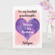 Una tarjeta nieta de 13 años rosa y morada que presenta una acuarela morada contra una acuarela rosa bonito, que se puede personalizar bajo el corazón morado con su nombre. En el interior de esta tarjeta de 13 años se lee un dulce sentimiento para tu hija, que puede ser fácilmente personalizado. En la parte trasera se encuentra la acuarela morada y el Feliz Cumpleaños, que también se puede cambiar. Esto haría un bonito para cualquier chica de cumpleaños.