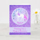 Esta tarjeta de cumpleaños presenta un diseño de unicornio de bonito con un purpurina falso morado. Puede personalizar la parte delantera de la tarjeta con un nombre y el texto dentro también.
