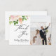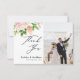 Vegetación Rosa Rosa Elegante Guión Foto Boda Minimalista Gracias Tarjeta. Exprese lo agradecidos que están con sus amigos y familiares que hicieron de su boda un especial extra con esta hermosa tarjeta de agradecimiento de boda. Todos los textos están preorganizados para que puedas personalizarlos fácil y rápidamente con tus propias palabras.