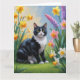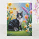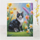 Tarjeta Pintura de flores de primavera de gato esmoquin