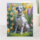 Tarjeta Pintura de flores de primavera de perro dálmata