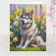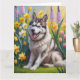 Tarjeta Pintura de flores de primavera del perro Husky sib