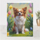 Tarjeta Pintura de flores de primavera del perro Papillon
