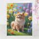 Tarjeta Pintura de flores de primavera del perro pomerania
