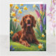 Tarjeta Pintura de perro Setter Rojo Irlandés con flores d