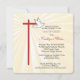 Hermosa tarjeta de invitación para la confirmación de un chica. Los rayos de oro brillan detrás de una cruz en rojo y una paloma blanca. El rojo es el color de la Confirmación y la paloma simboliza el Espíritu Santo. Personalice el texto para que sea perfecto para sus necesidades de confirmación. Las esquinas de esta tarjeta cuadrada se redondean añadiendo un elemento cohesivo con los bordes redondeados de la cruz.
