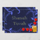 Tarjeta plana azul de Rosh Hashaná con manzanas y