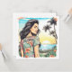 Una invitación maravillosa, con un chica sonriente, para entrar en una naturaleza soñadora, colorida y luminosa. Una ventana en un paisaje maravilloso.
