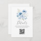 Tarjeta plana con cierre de boda de código QR floral azul. Fácil de cambiar el texto y añadir su url al código QR. Bonito, elegante acuarela floral.