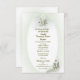 Celebre un precioso hito con la invitación a bautizar a este elegante chica, con un suave fondo verde y blanco, delicados acentos florales y una cruz de oro. Diseñada con escritura refinada y tipografía de sari, esta plantilla incluye texto de personalizable para el nombre de su hijo, detalles de la iglesia, lugar de recepción e información de RSVP. Perfecto para una celebración clásica, atemporal y llena de fe, esta invitación al bautismo es fácil de personalizar y de imprimir.