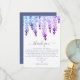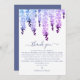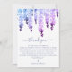 Tarjeta de agradecimiento de boda con acuarela de flores de glicina que presenta tu foto favorita con el texto "Gracias" en tipografía moderna de color púrpura con acentos de flores de glicina en acuarela azul, púrpura y lavanda. Parte de una colección diseñada por Evco Studio www.zazzle.com/store/evcostudio