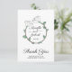 Esta única tarjeta de agradecimiento de boda presenta un elegante floral blanco simple en forma de anillo de boda, con el texto "gracias por compartir nuestro día especial con nosotros".
