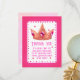 ¿Estás planeando una fiesta de cumpleaños de niña? ¿Pensando en decoraciones rosas y elementos de estilo princesa? ¡Eso es genial, porque estas tarjetas de agradecimiento de fiesta son justo para ti! Cuando los invitados vengan a la fiesta, estarán felices de recibir una tarjeta así. Puedes escribir tu propio texto debajo de Gracias. Pintado con amor.