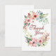 Esta es una tarjeta plana de agradecimiento con flores rosadas. La parte posterior se deja en blanco para usar en cualquier ocasión.