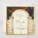 Adéntrate en un cuento de hadas con esta encantadora tarjeta de agradecimiento de boda con puerta de jardín. Con una ornamentada puerta dorada rodeada de flores en flor y una iluminación mágica, esta tarjeta marca el tono para una celebración romántica y elegante. El diseño de la parte posterior coincidente evoca un majestuoso arco de jardín, perfecto para una boda de cuento. Totalmente personalizable para tu día soñado.
