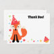 Tarjeta plana (11.4 x 15.9 cm) con ilustración de dibujos animados de un pequeño zorro con un pastelito que lleva un sombrero de fiesta. Alrededor de él hay estrellas. Texto "Gracias" (se puede quitar). Tarjeta brillante y divertida de agradecimiento de cumpleaños. Diseño e ilustración de MheaDesign. Para cualquier consulta sobre la imagen o el diseño, por favor contácteme a través de mi página de Facebook: https://www.facebook.com/MheaDesign