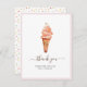 Tarjeta plana de agradecimiento para despedida de soltera con helado linda con el nombre de la novia y mensaje de agradecimiento en la parte posterior con ilustración de cono de helado con anillo de compromiso en la parte superior. Puede eliminar el mensaje e incluir su propio mensaje o eliminar.