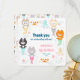 Una tarjeta plana de agradecimiento de cumpleaños con tema náutico decorada con gatitos sirena lindos.