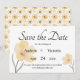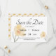 Elegantes invitaciones de aviso de fecha de boda con hermosas flores amarillas. Coordina tu papelería de boda con accesorios de boda a juego en nuestra tienda