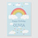 Tarjeta plana de cumpleaños feliz personalizada para niños arcoiris ilustrada por Kathrin Legg