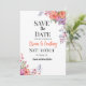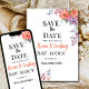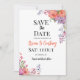 Celebre su día especial con esta elegante tarjeta de "save the date" floral que presenta flores de acuarela naranjas y púrpuras. Perfecta para anuncios de boda en cualquier estación, esta plantilla personalizable de "save the date" de boda está diseñada para impresionar a sus invitados con su aspecto romántico, moderno y atemporal.
