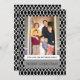 Elegante y moderno Elegante tarjeta plana de fotos de vacaciones de celosía con un delicado diseño de enlosado blanco y un fondo negro. Esta moderna y sencilla tarjeta de fotos se puede personalizar fácilmente con una foto y un saludo personalizado de los Navidades. Para obtener más opciones de personalización, haga clic en Personalizar. Fotografía © Storytree Studios, Stanford, CA