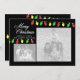Añade dos de tus fotos favoritas a este caprichoso y divertido saludo de tarjeta plana de los Navidades. Tarjeta negra clásica con luces de colores vivos y mucho espacio en la parte trasera para tus propios sentimientos personales.
