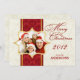 Elegante damasco rojo de temporada con acentos dorados y marco de imagen con hermoso fondo de brocado de marfil blanco de invierno. Añade tu foto familiar de vacaciones favorita y personalizar el texto. Manera contemporánea de enviar felices saludos de vacaciones de invierno a todos tus amigos y seres queridos con un estilo vintage formal. Postal de correspondencia, invitaciones para fiestas de vacaciones y pegatinas disponibles bajo petición. PCF12