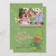 Este diseño presenta un fondo verde con copos de nieve y un aspecto "capeado" y se complementa con un árbol de Navidad de inspiración vintage. Carga tu propia foto en el marco de corte de este diseño contemporáneo y personalizar los campos de texto para añadir tu nombre y otra información o borrar uno de los campos de texto si prefieres tener sólo uno. La tipografía única dice: "Feliz Navidad". Un lindo candiano y hojas huecas completan el aspecto de este diseño. El reverso presenta el mismo diseño de fondo.