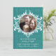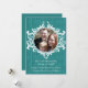 Moda y encantadora tarjeta plana Rustic Swirls Holiday Photo con un elegante y florido adorno giratorio y un fondo de textura de madera falsa en color turquesa. Este diseño está lleno de estilo vintage y es perfecto para pasar unas cálidas vacaciones. Fácil de personalizar, simplemente reemplace la foto por una de las suyas y añada los saludos personalizados y el texto de su elección. Haga clic en "Personalizar" para encontrar más opciones de personalización.