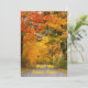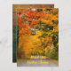 El follaje otoñal colgado sobre una carretera es la fotografía en la parte delantera de las tarjetas planas. Texto personalizar en ambos lados e incluir el nombre del Pastor si lo desea, hojas Naranja y dorada, con texto amarillo-dorado en negrita. El lado inverso es una imagen gráfica, angustiada en colores oscuros con una sola hoja roja. También compra como descarga instantánea.