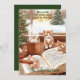 Captura la magia de la temporada navideña con esta hermosa tarjeta de Navidad plana que presenta una serena pintura en acuarela de una escena invernal al aire libre a través de la ventana y un acogedor grupo de un libro abierto, dos adorables gatitos naranjas y blancos, una bebida humeante y una ramita de canela. La obra de arte brillante está coronada con el saludo: "Deseos cálidos en esta temporada navideña y todo el Año Nuevo" en una fuente simple y rica en verde bosque. A continuación, hay una línea de nombre personalizable en el mismo color verde oscuro en una elegante letra cursiva. Agrega la fecha en números pequeños debajo. La parte posterior de la tarjeta complementa la escena con el mismo verde intenso que el texto, lo que la hace perfecta para enviar alegría navideña a seres queridos. Ideal para difundir saludos personalizados y sinceros en esta Navidad y temporada festiva