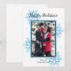 Felices Fiestas de © Cathy Thompson es un diseño clásico de elegantes copos de nieve azules sobre un fondo blanco nevado. Agrega tu propia foto y hazlo personalizado con la plantilla que está lista para ti.