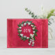 Este diseño moderno tiene un fondo rojo tradicional para la corona hecha de rocas de corazón y hojas. Es tan anticuado como nuevo y único. Personalice esto con su mensaje.