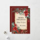 Tarjeta plana de Navidad con floral clásico y fondo rojo