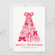 Tarjeta plana de Navidad con lazo rojo rosa modern