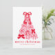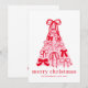 Tarjeta plana de vacaciones moderna rosa y roja con árbol y lazo - Diversión festiva personalizada.