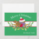 Este adorable pajarito lleva su sombrero rojo de fiesta y bufanda morada. Está sentado en ramas verdes de fiesta con bayas rojas. El texto se puede personalizar. En el reverso de la tarjeta hay un cuadro de texto que te permite agregar tu propio mensaje de fiesta. Si lo prefieres, puedes eliminar el cuadro y escribir tu mensaje.